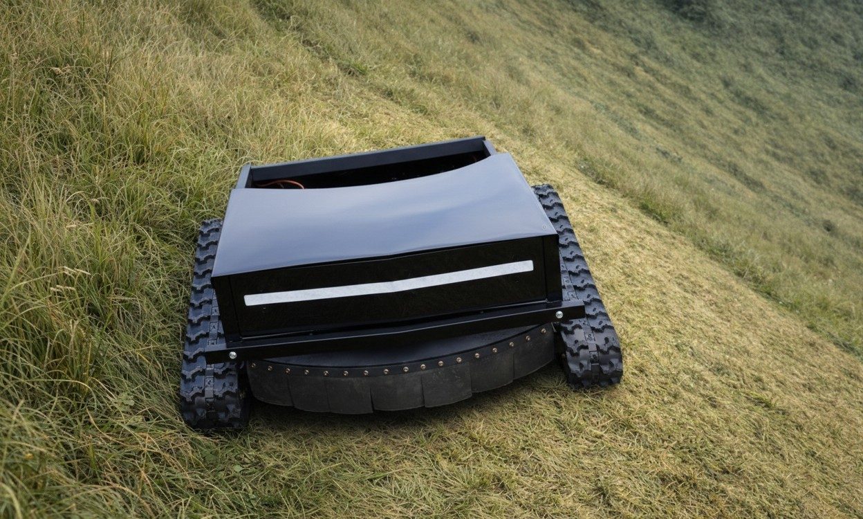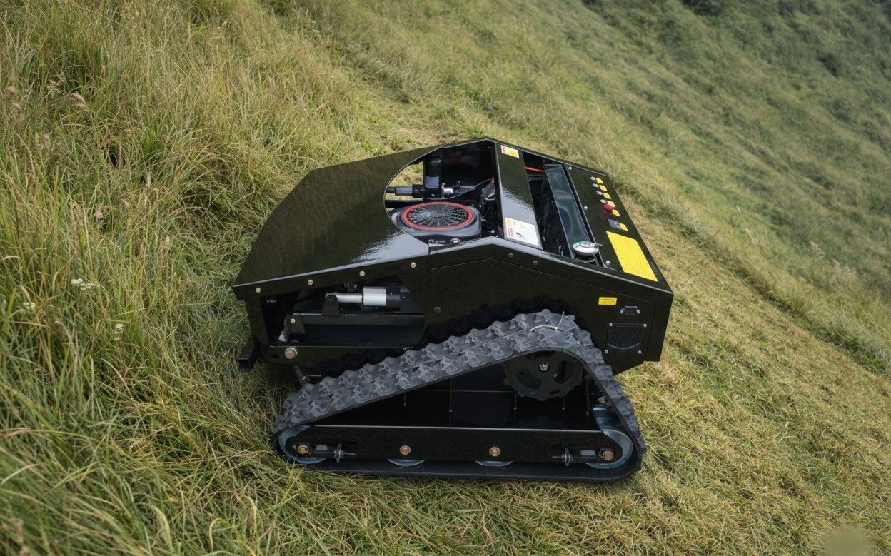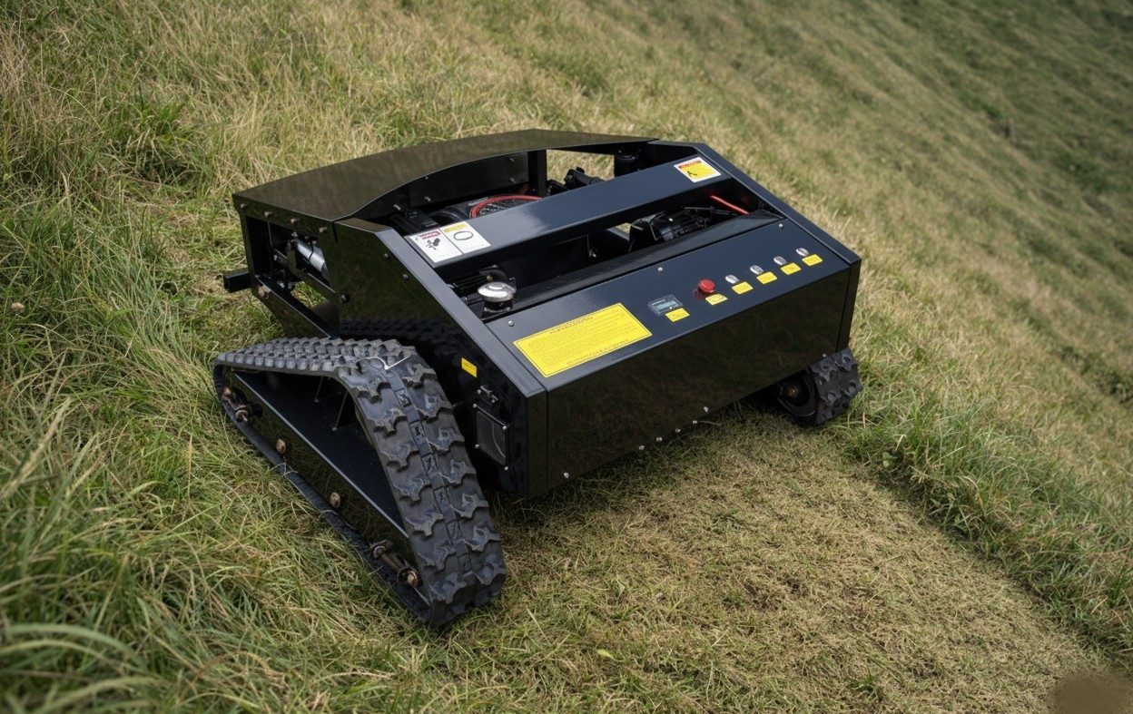 Zmogljiva daljinsko vodena kosilnica-mulčer za varno in učinkovito košnjo✅