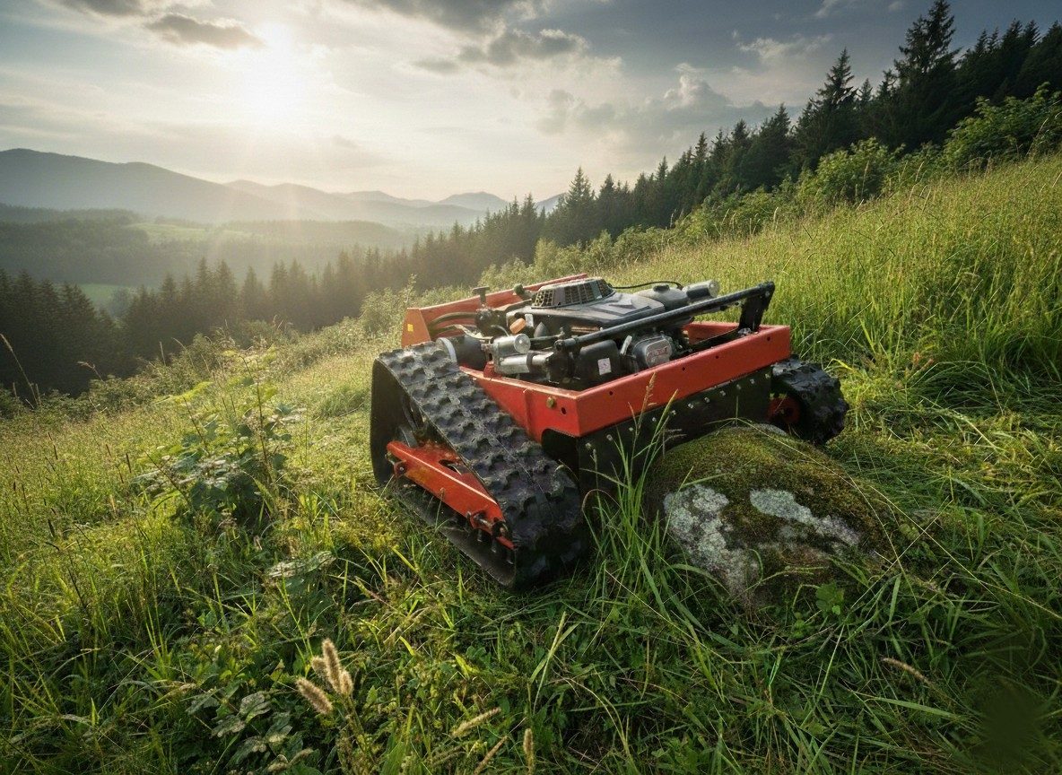 Zmogljiva daljinsko vodena kosilnica-mulčer za varno in učinkovito košnjo✅