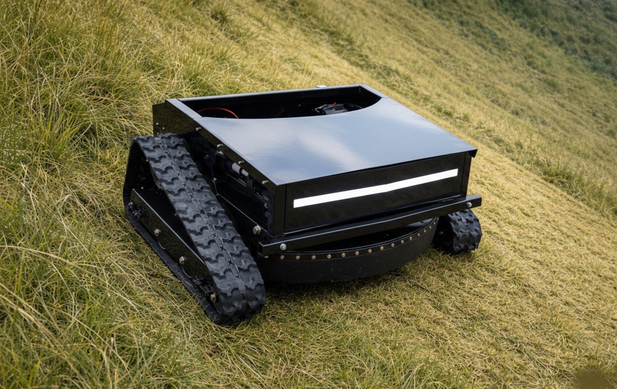 Zmogljiva daljinsko vodena kosilnica-mulčer za varno in učinkovito košnjo✅